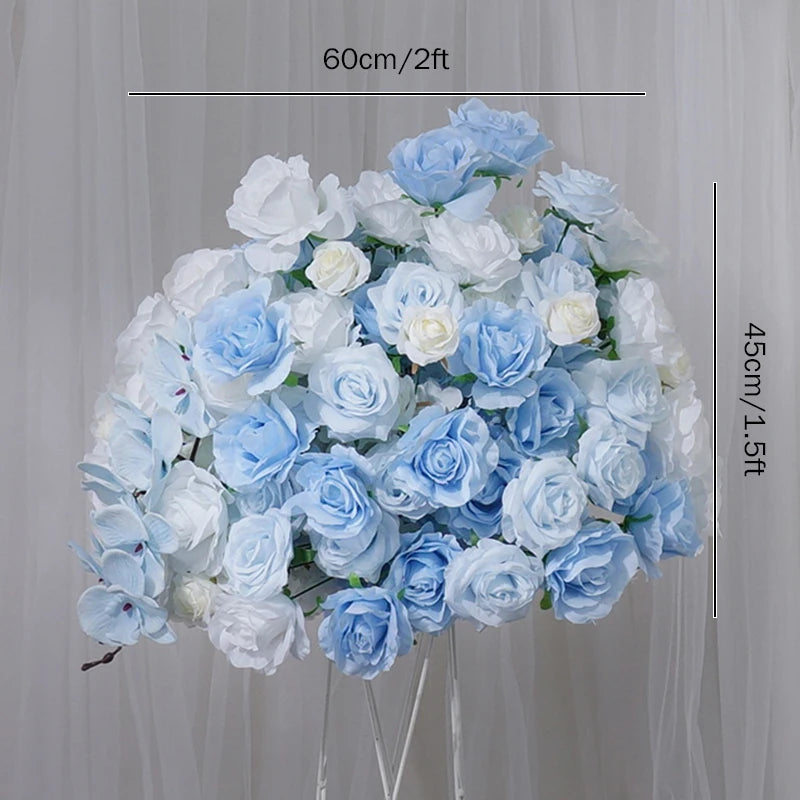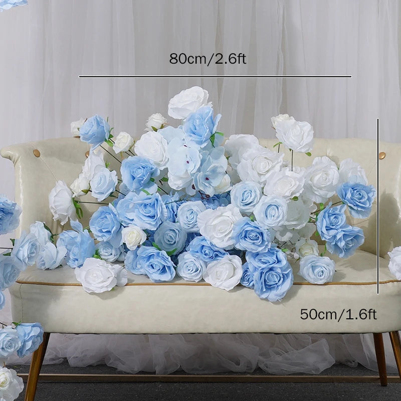 Transform your wedding venue into an enchanting garden setting with this stunning Baby Blue and White Rose backdrop. Featuring cascading arrangements of premium artificial roses in soft baby blue and crisp white tones, this professionally designed piece creates an elegant focal point for ceremonies, receptions, or photo sessions. The lush floral composition offers sophisticated color coordination that complements any wedding aesthetic, from romantic to modern. Perfect for creating memorable moments and stunning photography backdrops, this versatile piece elevates your celebration with timeless botanical elegance.
